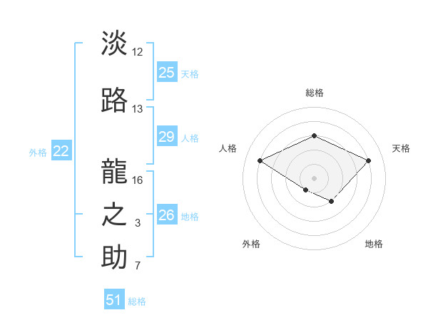 淡路 龍之助さんの総格は51画の3点!