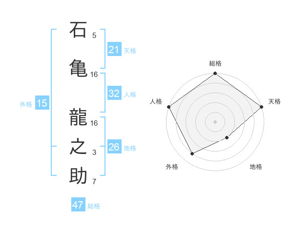 石亀 龍之助さんを姓名の画数から五運を鑑定