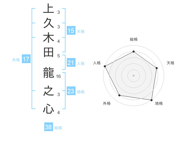 上久木田 龍之心さんを姓名の画数から五運を鑑定