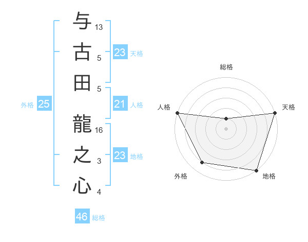 与古田 龍之心さんを姓名の画数から五運を鑑定