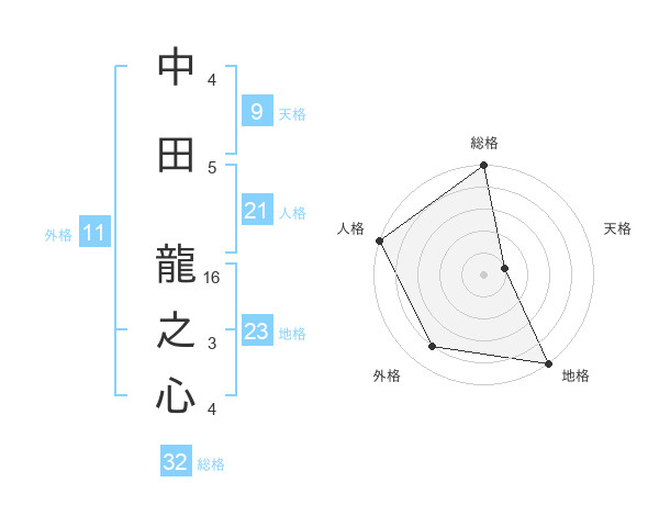 中田 龍之心さんの外格は11画の4点