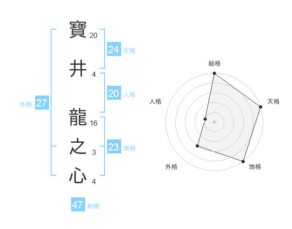 寶井 龍之心さんを姓名の画数から五運を鑑定