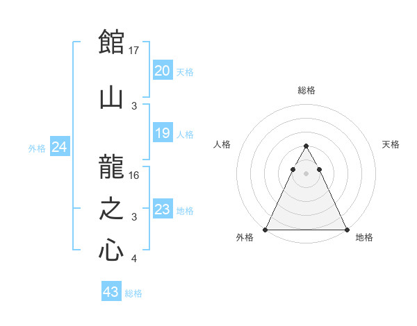 館山 龍之心さんの総格は43画の2点!