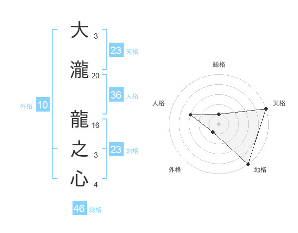 大瀧 龍之心さんを姓名の画数から五運を鑑定