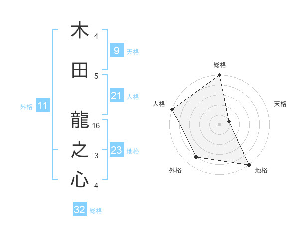 木田 龍之心さんを姓名の画数から五運を鑑定