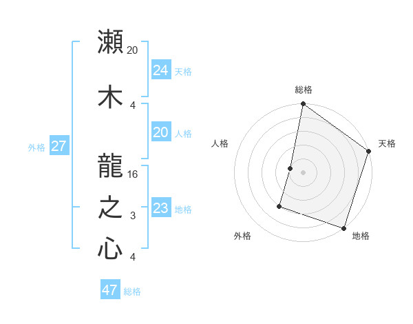瀬木 龍之心さんを姓名の画数から五運を鑑定
