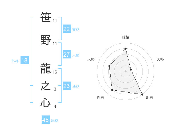 笹野 龍之心さんを姓名の画数から五運を鑑定
