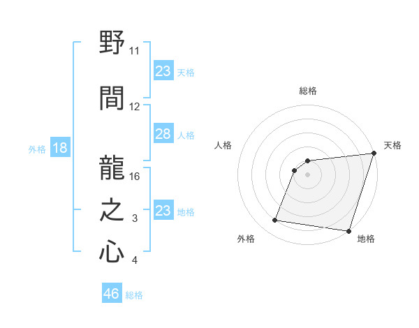 野間 龍之心さんの天格は23画の5点!