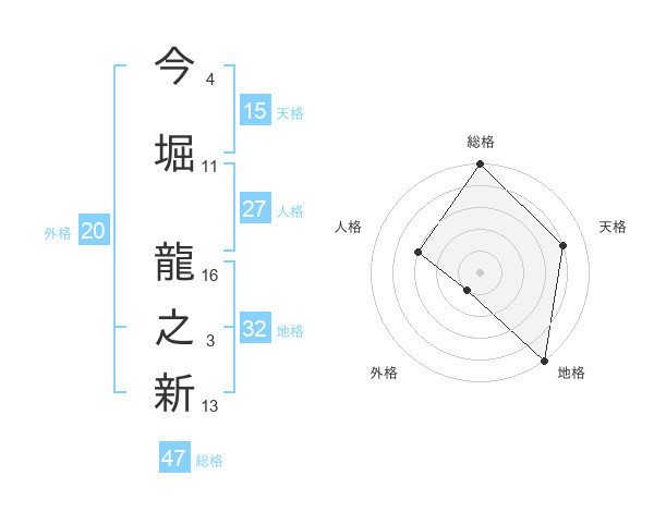 今堀 龍之新さんを姓名の画数から五運を鑑定