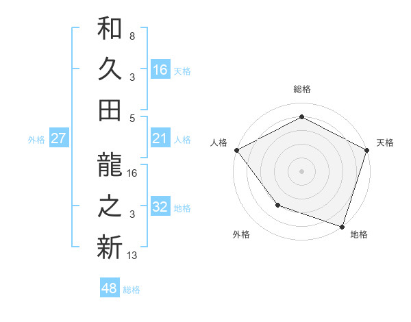和久田 龍之新さんを姓名の画数から五運を鑑定
