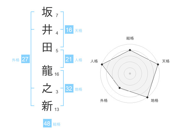 坂井田 龍之新さんの総格は48画の4点!