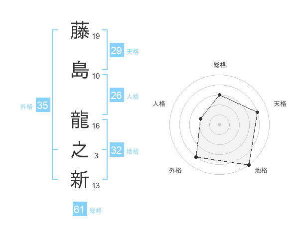 藤島 龍之新さんの総格は61画の3点!