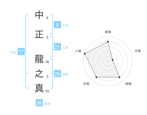 中正 龍之真さんを姓名の画数から五運を鑑定