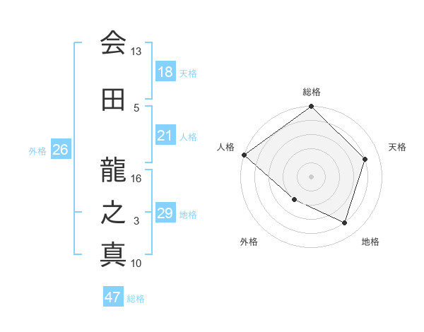 会田 龍之真さんを姓名の画数から五運を鑑定