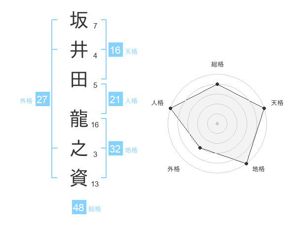 坂井田 龍之資さんを姓名の画数から五運を鑑定
