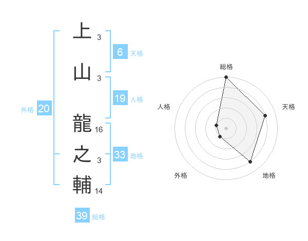 上山 龍之輔さんを姓名の画数から五運を鑑定