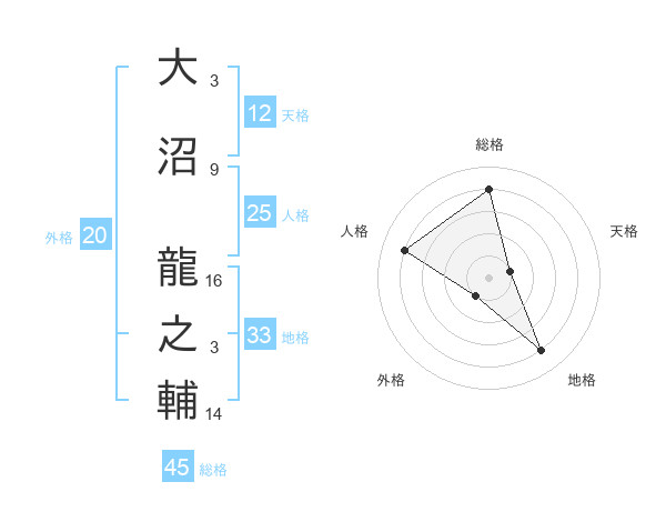 大沼 龍之輔さんの総格は45画の4点!