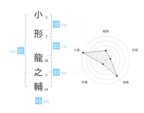 小形 龍之輔さんを姓名の画数から五運を鑑定