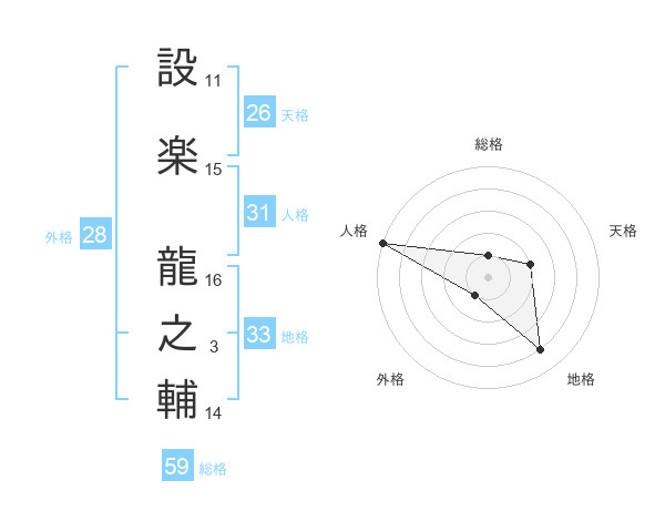 設楽 龍之輔さんを姓名の画数から五運を鑑定