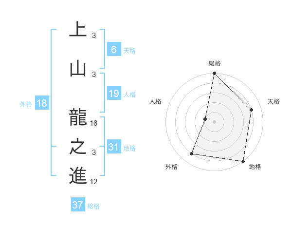 上山 龍之進さんの総格は37画の5点