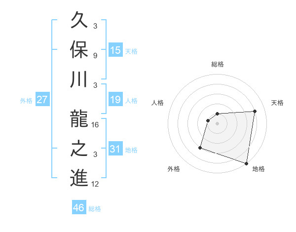 久保川 龍之進さんの地格は31画の5点!