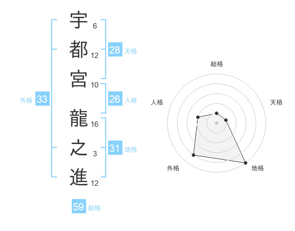 宇都宮 龍之進さんを姓名の画数から五運を鑑定