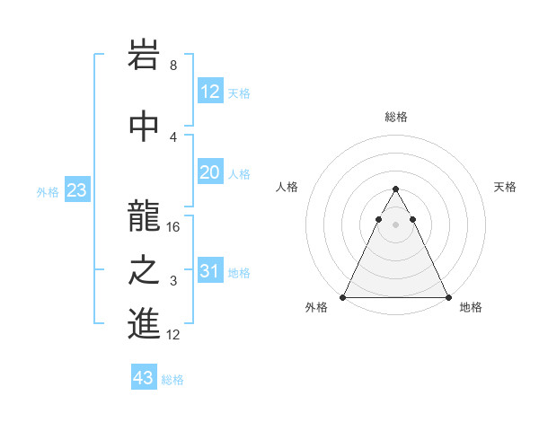 岩中 龍之進さんを姓名の画数から五運を鑑定