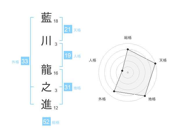 藍川 龍之進さんの地格は31画の5点!