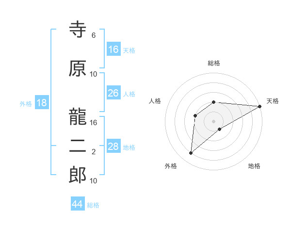 寺原 龍二郎さんを姓名の画数から五運を鑑定