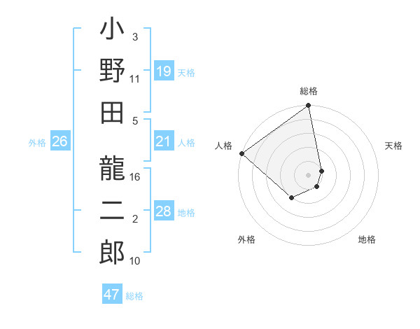 小野田 龍二郎さんを姓名の画数から五運を鑑定