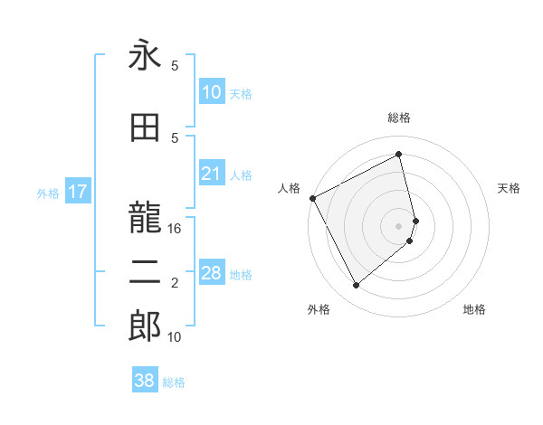 永田 龍二郎さんの総格は38画の4点