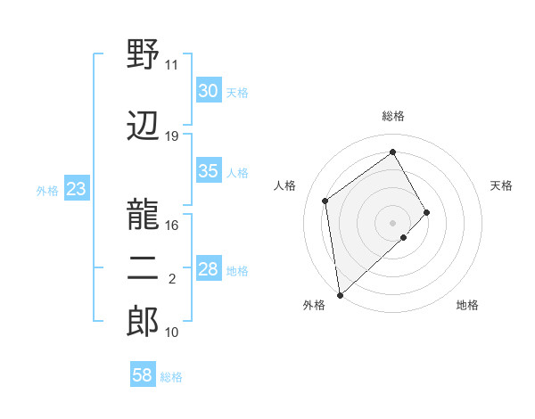 野辺 龍二郎さんを姓名の画数から五運を鑑定