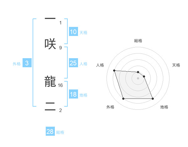 一咲 龍二さんの総格は28画の1点!