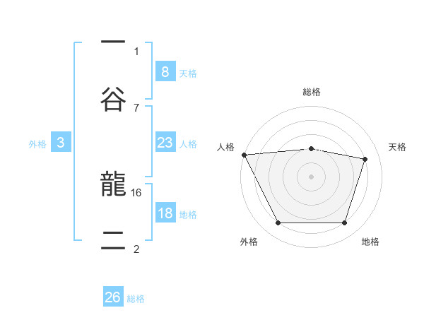 一谷 龍二さんを姓名の画数から五運を鑑定