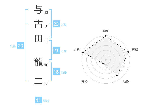 与古田 龍二さんを姓名の画数から五運を鑑定