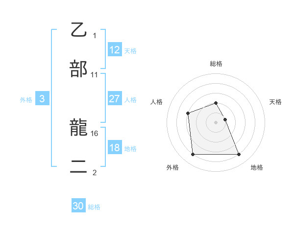 乙部 龍二さんの天格は12画の1点!