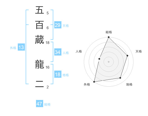 五百蔵 龍二さんの総格は47画の5点!