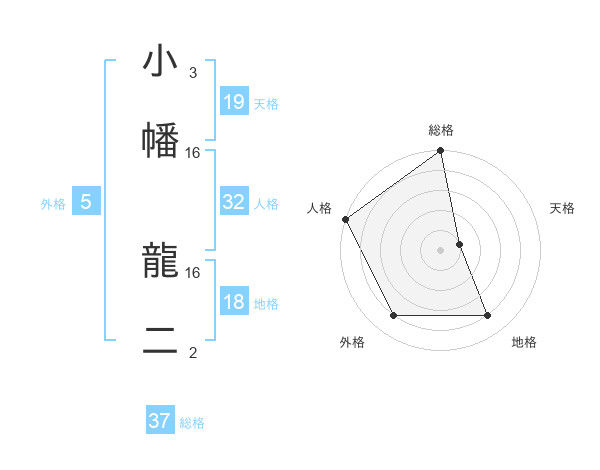 小幡 龍二さんの総格は37画の5点!
