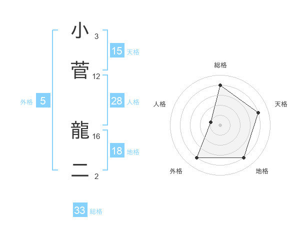 小菅 龍二さんの総格は33画の4点!