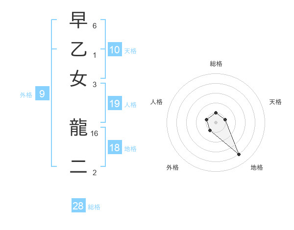 早乙女 龍二さんの総格は28画の1点!