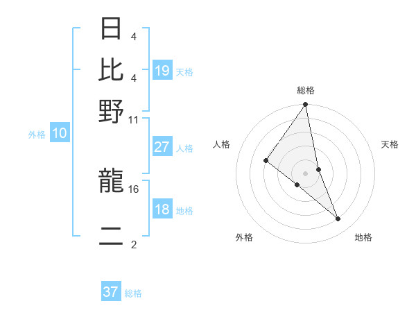 日比野 龍二さんを姓名の画数から五運を鑑定
