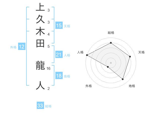 上久木田 龍人さんを姓名の画数から五運を鑑定