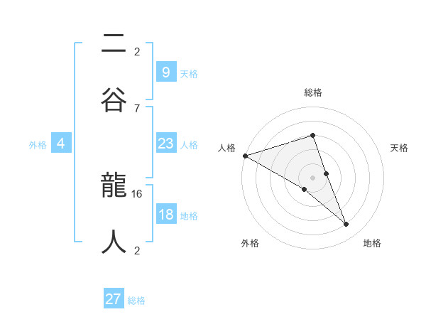 二谷 龍人さんの総格は27画の3点!
