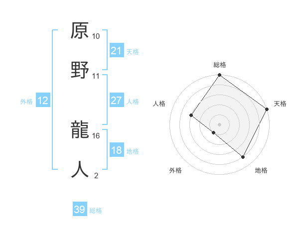 原野 龍人さんの総格は39画の5点!