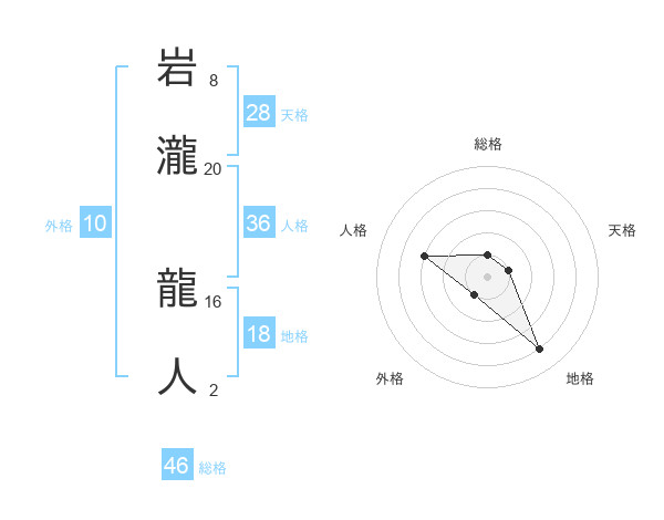 岩瀧 龍人さんの総格は46画の1点!