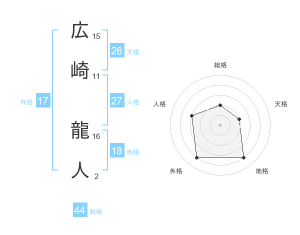 広崎 龍人さんの総格は44画の2点!