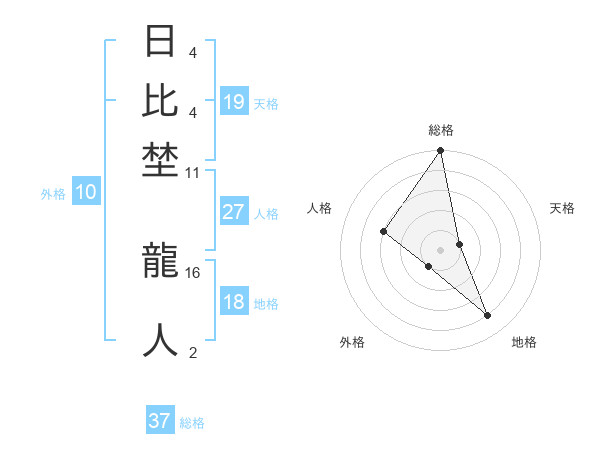 日比埜 龍人さんの総格は37画の5点!