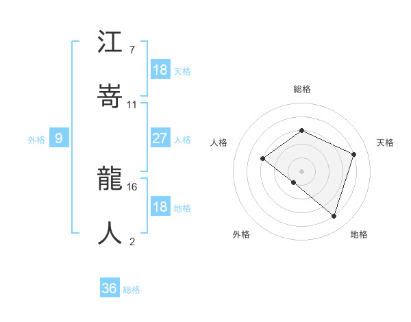 江嵜 龍人さんの天格は18画の4点!