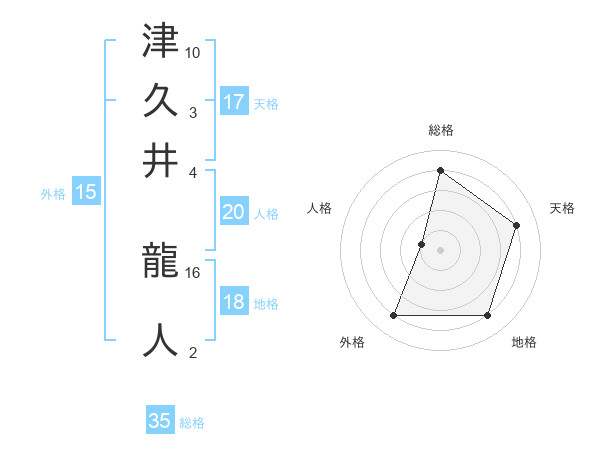 津久井 龍人さんを姓名の画数から五運を鑑定