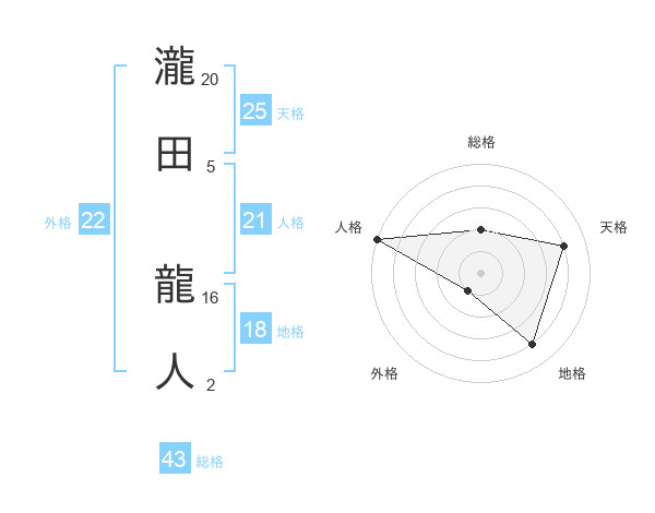 瀧田 龍人さんを姓名の画数から五運を鑑定